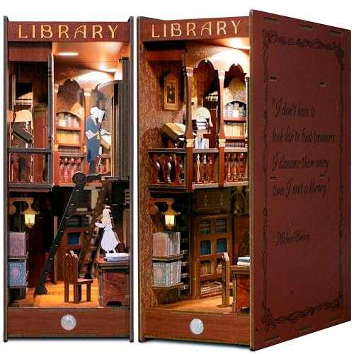 A cozy classical library book nook with LED lighting, motion sensor, hidden touch switch, and a mirror for infinite-depth illusion. No painting required.