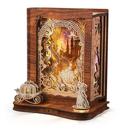 Inspired by the Cinderella fairytale, this 3D puzzle doubles as a storybook model and a charming nightlight. Layered scenes set the fairy-tale mood, while miniature details, like the crystal shoes, pumpkin carriage, and fairy godmother—add magical touches from every angle. Create a cozy ambiance with the warm, adjustable LED—long-press to dim and short-press to switch on or off. When illuminated, soft light enhances the layered shadows, while special films make colors gently shimmer and shift as you move. This medium-difficulty project includes 99 precisely laser-cut pieces and takes about 2–3 hours to assemble. With clear step-by-step instructions, it’s a fun and fulfilling DIY activity for adults, ideal for gifting. Made from durable 3-ply engineered birch wood with smooth, safe edges. Precision laser-cutting creates clean fits, delicate silhouettes, and rich textures, showcasing iconic Cinderella elements inside the 3D storybook nightlight. More than just a puzzle, it becomes a meaningful keepsake and charming decor once completed. The Funpola Cinderella Story Book Lamp makes a memorable gift for birthdays, holidays, or any special occasion for adults. This product is intended for individuals aged 14 and above and is not designed for children.